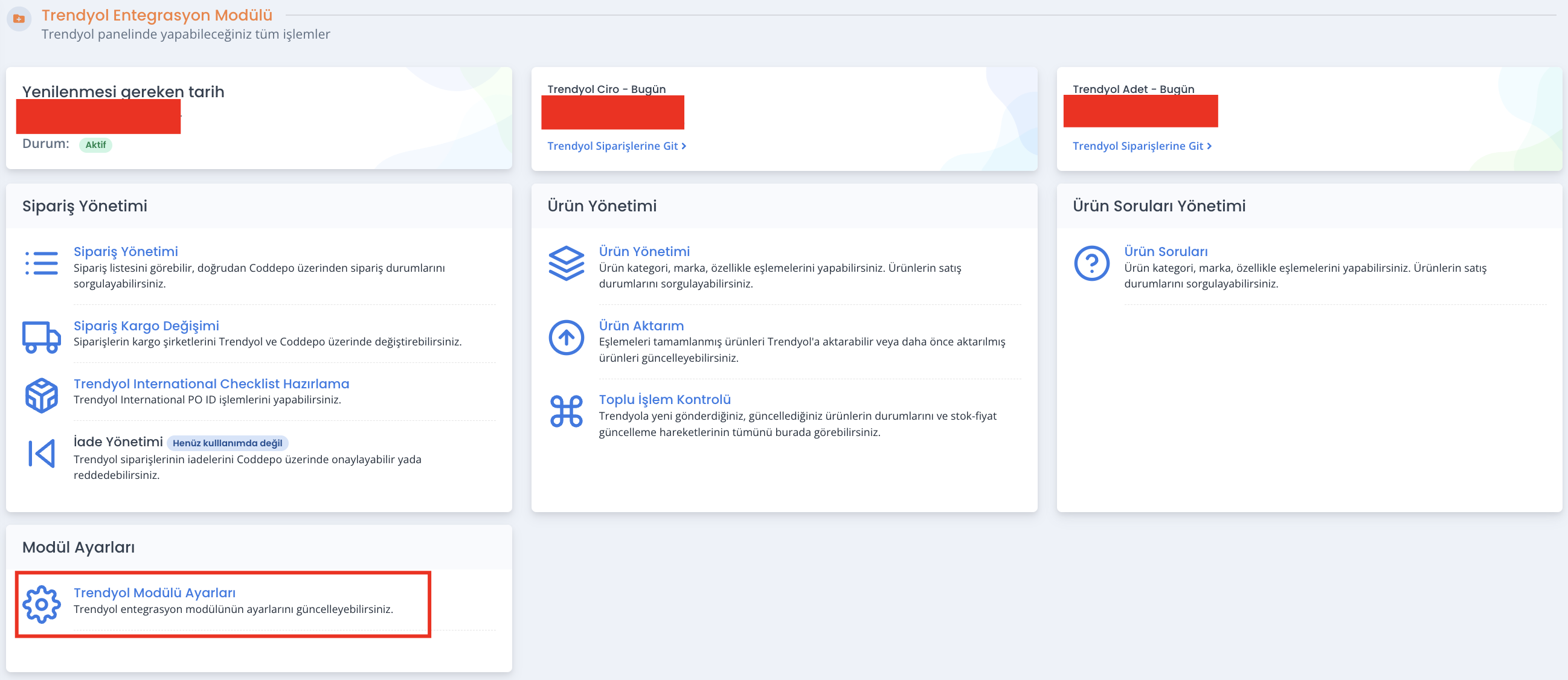 Öncelikle Coddepo içerisindeki Trendyol modülüne girin.