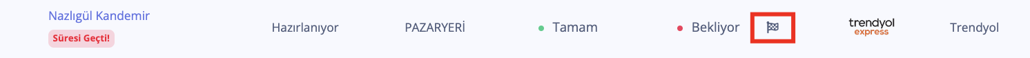 Hazırlanıyor'da kalan paketin zaten yolda olup olmadığını Trendyol partner panelden yapabileceğiniz gibi, Coddepo sipariş listesindeki Bayrak ikonuna tıklayarak da yapabilirsiniz.