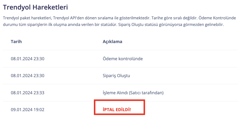 Bilindiği gibi Trendyol siparişleri, kargo şirketi tarafından işlem görene kadar iptal edilebilmektedir. Yani siz sipariş çıkışını yapıp Coddepo'da "Kargoya Verildi" statüsüne geçirmiş olsanız da, kargo şirketi o paketi yola çıkarana kadar iptal edilebilmektedir.